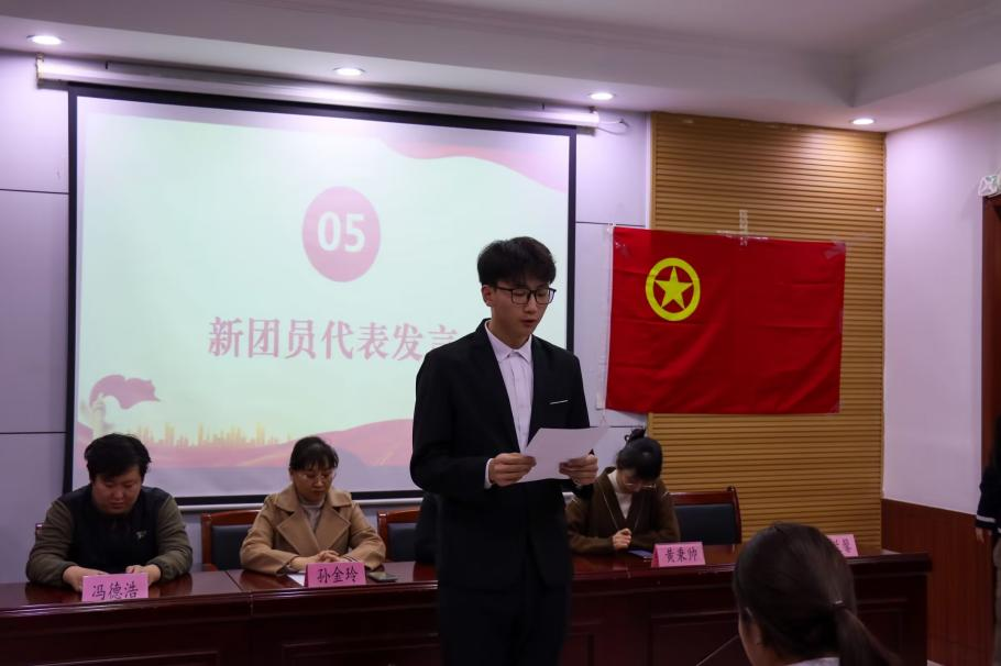 张英伟作为新团员代表发言,承诺将牢记今日誓言,不断追求进步,不断超越自我,用实际行动书写属于新时代青年的崭新篇章。