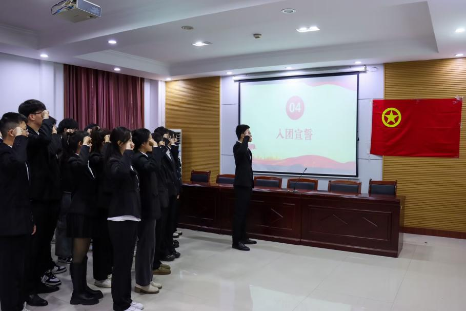 团委副书记孙申带领全体团员宣誓。坚定的入团宣誓,不仅彰显了新团员们对团组织的无限敬仰,也标志着他们正式踏上了为共产主义事业奋斗的青春征程。