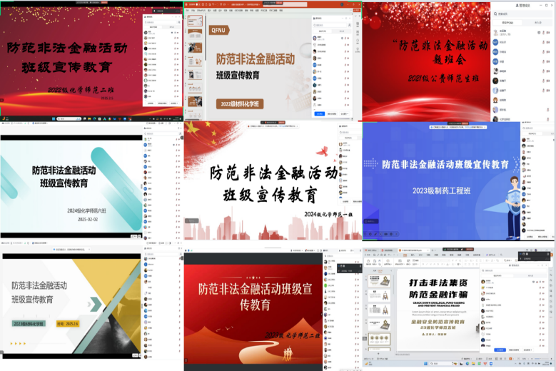 全体学生进行相关案例的宣传和警示教育,通过召开线上班会增强学生自身的防范非法金融活动的安全意识,各个班级积极组织回应,培养了学生们的法治观念和社会责任感,为未来的成长和发展奠定坚实的基础。