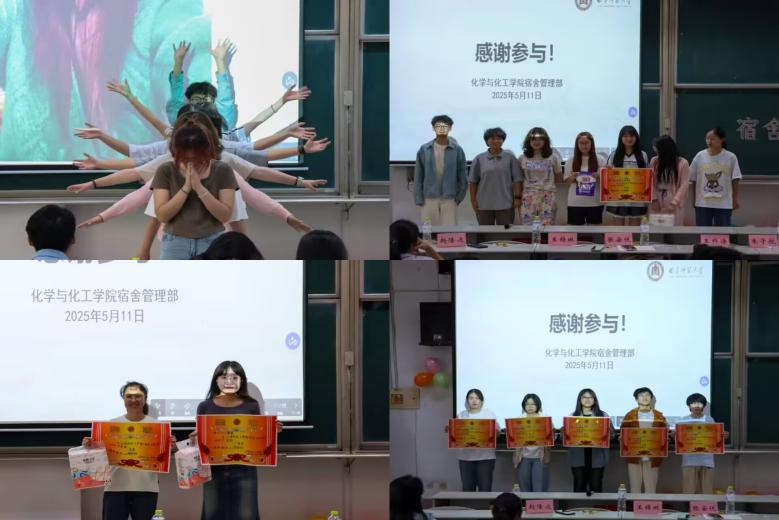 活动伊始,主持人致开场词宣布活动正式开始,随后各个宿舍进行文艺表演。本次活动创新设置多元化竞赛环节,除才艺展示外,各宿舍精心制作的趣味视频作为加分赛同步开展,评委组从才艺表现与视频创意两方面综合评分,两项成绩相加得出最终排名。活动过程中穿插猜歌名、抢凳子、你画我猜等互动小游戏,现场氛围热烈,欢笑不断。经评审,共评选出一等奖1名、二等奖2名、三等奖5名,并为获奖宿舍颁发荣誉证书与奖品,激励学生积极参与宿舍文化建设。