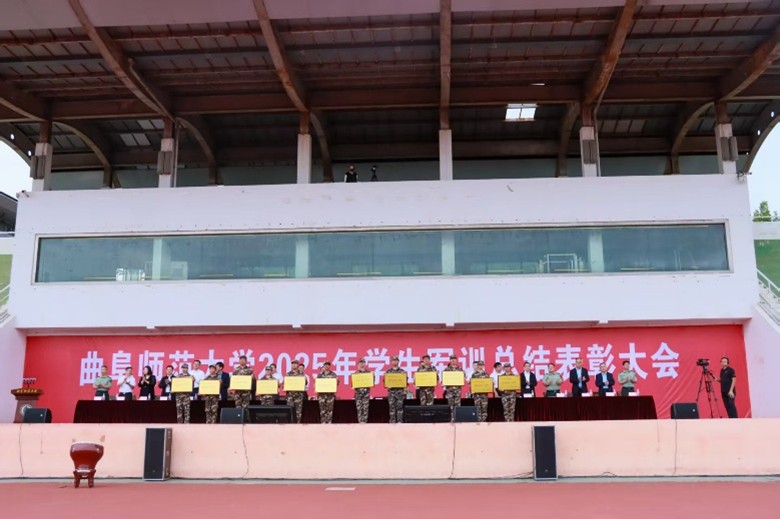 曲阜校区于9月21日下午在南操场召开军训总结表彰大会,2025级全体新生参加大会。