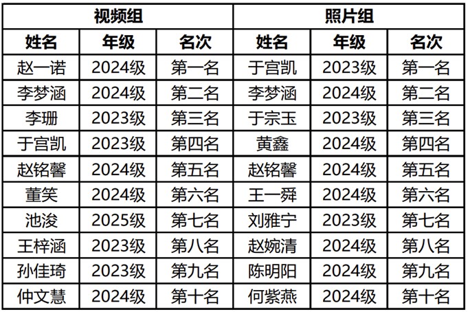 图为本次活动获奖名单