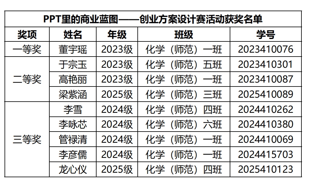 图为活动获奖名单