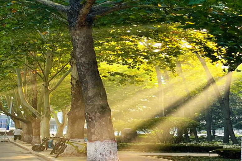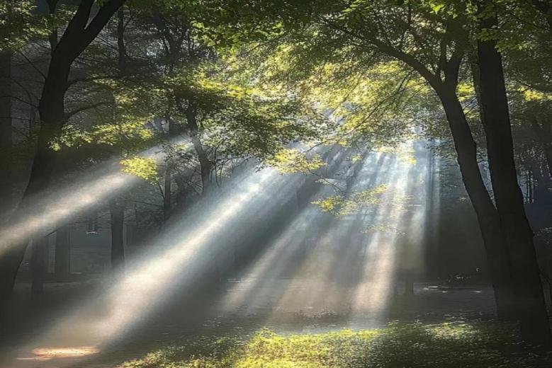 图为展示空气丁达尔效应的作品