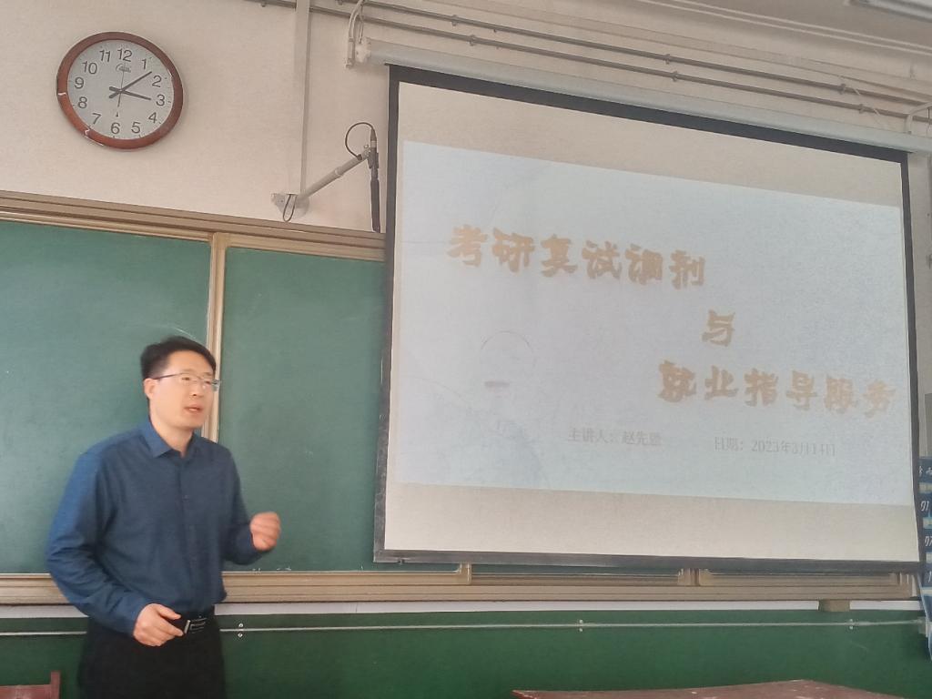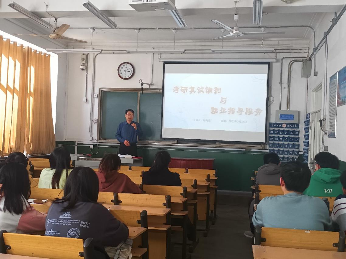 举办“考研+就业提升营”首场精准指导会,指导会于2023年3月13日在化院105教室举行,此次特邀2023届就业指导导师赵先恩老师主讲考研复试调剂与就业指导,活动面向2023届部分毕业生,由化院学生会学习部承办。