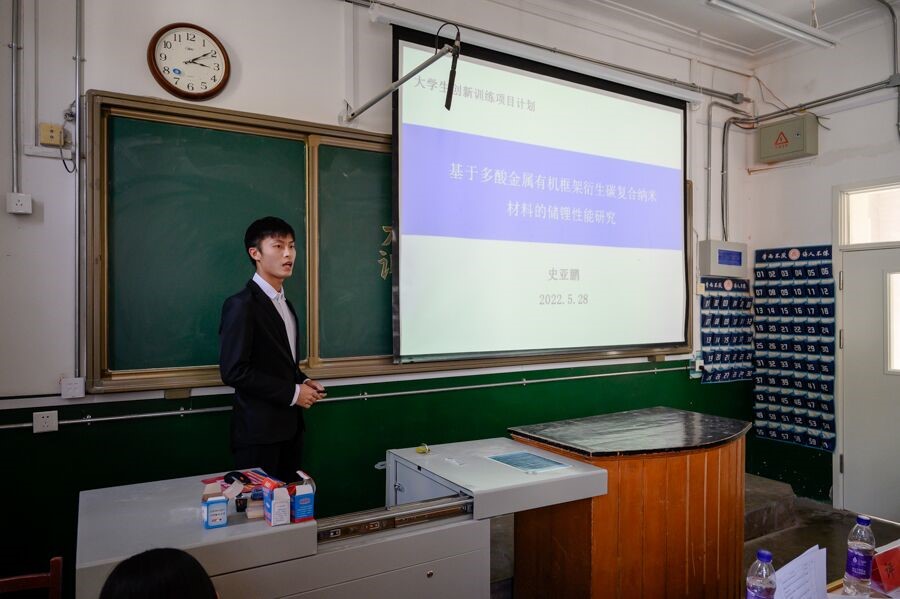 会议伊始,主持人宣读汇报规则,团队负责人按分组依次讲解PPT5分钟。汇报过程中,各汇报人员依照自己的研究现状及成果,以化学专业知识为基础,分别从项目简介、存在的问题、后期规划、预期结果等方面进行了深入浅出地分析。其余候场同学皆在认真准备,观摩学习。整场会议秩序井然,学术氛围浓厚。评委们认真听取汇报,对项目研究中存在的问题及考虑不周的地方给出了合理化建议,以及对开展的大创工作予以充分肯定。同时他们也希望同学们抓住机会,以大创项目为平台,展示自我,力争取得更好的成绩。