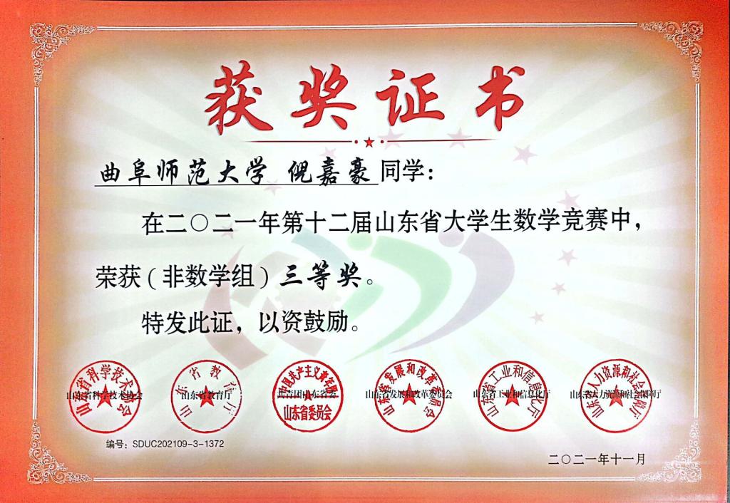 2018级高博文荣获非数学类一等奖,2018级房蕴珂获得二等奖,2020级倪嘉豪、张永康获得三等奖。经过本次竞赛,参赛学子展示风采、提高能力、锻炼思维,拥有了一次难忘的经历。同时也为澳博体育