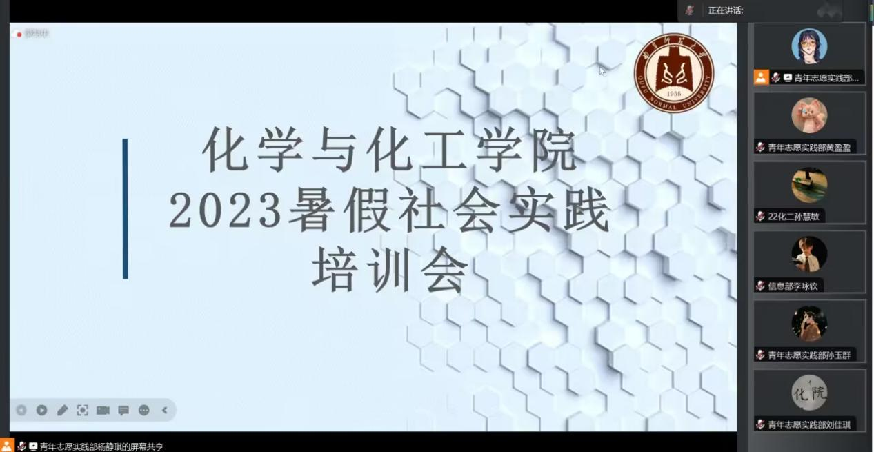 会议伊始,由青年志愿实践部干事杨静琪介绍本次会议的目的和主要任务。接下来,杨静琪展示了有关社会实践投稿的要求和注意事项。随后,信息部部长李咏钦详细讲解了中青网投稿的相关事宜。最后,青年志愿实践部刘佳琪介绍了实践报告的写法及其他注意事项。