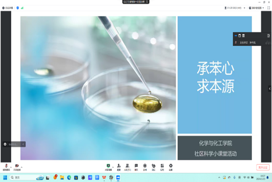图为青年实践部干事讲解社区科学小课堂活动
