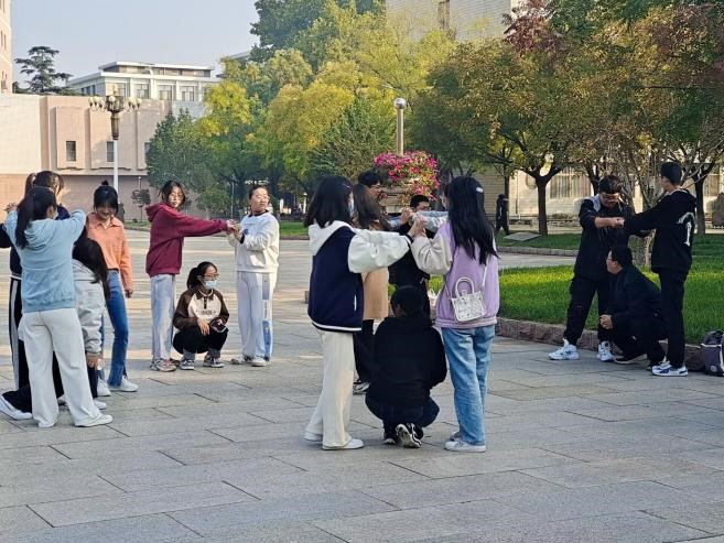 活动伊始,大家围坐起来依次自我介绍,在欢声笑语中,营造出轻松舒适的环境,也使大家对彼此有个初步的了解和认识。随后进入活动环节,本次团体辅助活动总共有5个部分,分别是奇妙口香糖、驿站传书、逢三抓手、心有千千结、新声心语。随着活动的进行大家越来越熟悉,活动开展的也越来越顺利,逢三抓手游戏更是使整个活动达到了高潮,大家的欢笑声,掌声回荡在整个孔子文化广场。随着新声心语游戏的结束,本次活动也接近了尾声,至此团体辅导活动圆满完成。